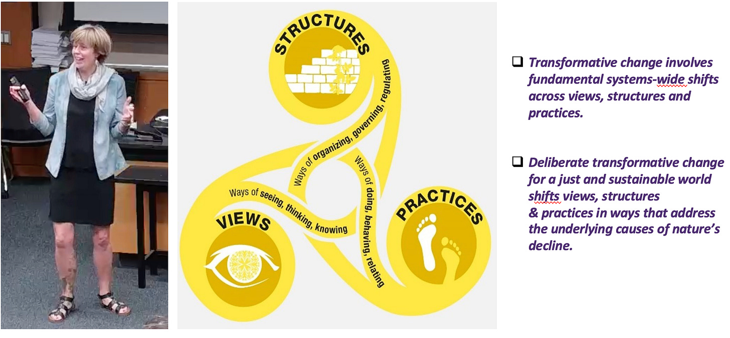 Yet Wickson’s message was not despair but transformation. Drawing from the IPBES framework, she defined transformative change as systemic shifts across three interconnected dimensions: